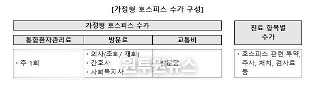 구체적으로, 의사·간호사·사회복지사의 환자 가정 방문 및 임종 돌봄, 전화상담 등 상시적 환자 관리서비스에 대한 수가를 인상하여 가정형 호스피스 전반에 대한 보상을 강화한다.