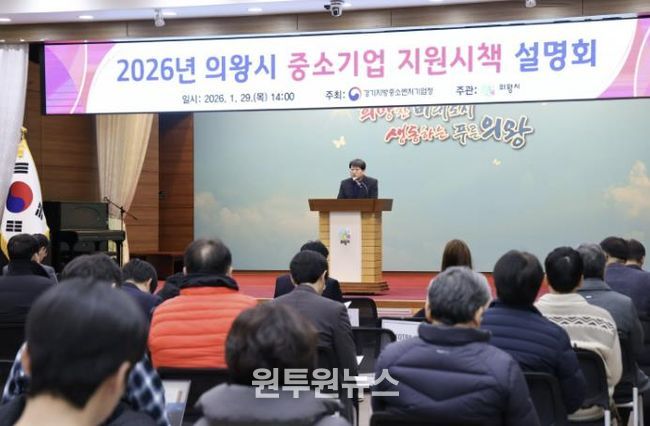 (원투원뉴스) 의왕시는 1월 29일 시청 대회의실에서 ‘2026년 중소기업 지원 시책 설명회’를 개최했다.