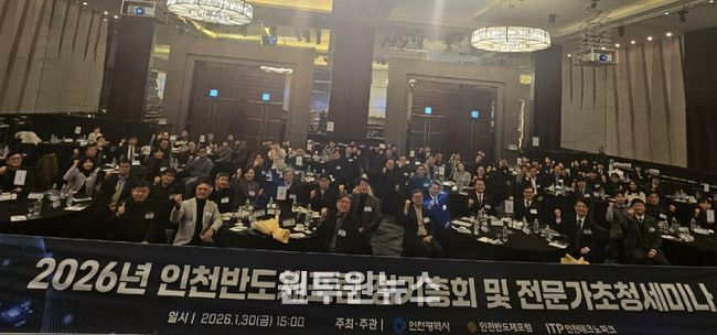 (원투원뉴스) 인천광역시는 지난 1월 30일 쉐라톤그랜드 인천호텔에서 ‘2026년 인천반도체포럼 정기총회 및 전문가 초청 세미나’를 개최했다고 밝혔다.