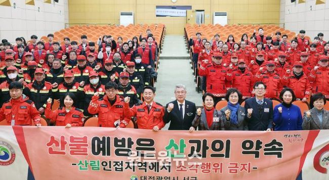 (원투원뉴스) 대전 서구는 봄철 산불조심기간을 맞아 2일 구청 구봉산홀에서 일반공무원진화대 및 산림재난대응단(산불감시원) 발대식을 개최했다.