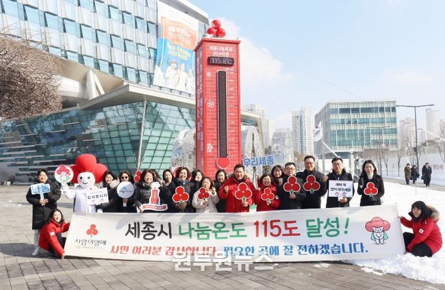 세종사회복지공동모금회(회장 박상혁)는 2월 2일 11시 30분 세종시청 앞 사랑의온도탑 앞에서 박상혁 회장, 김려수 세종시 보건복지국장, 민경희 세종 사랑의열매 나눔봉사단장 등 30여명이 참석한 가운데 ‘희망2026나눔캠페인 세종나눔온도 115.8도 달성 기념 및 폐막식’을 가졌다.