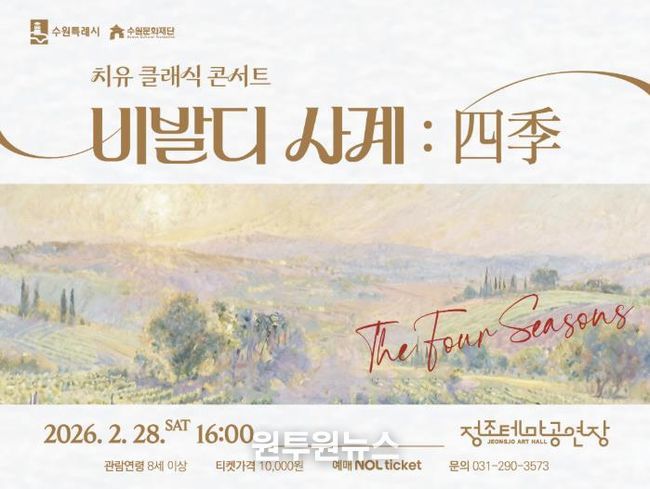 수원문화재단은 오는 28일 토요일 오후 4시 정조테마공연장에서 ‘치유 클래식 콘서트 '비발디 사계: 四季'’를 개최한다.