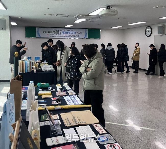 교육은 학교 업무 담당자 70명을 대상으로, 각 협약기관 담당자가 분야별 실무 내용을 설명하는 방식으로 진행했으며, 특히 현장에 마련된 중증장애인생산품 전시장은 제품에 대한 이해를 돕고 학교 현장에서의 활용 가능성을 확인하는 계기가 됐다.