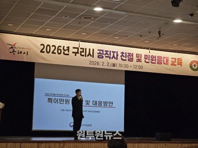 (원투원뉴스) 구리시는 지난 2일 시청 1층 대강당에서 시민이 체감하는 고품격 민원 서비스를 구현하기 위해 전 직원을 대상으로 ‘2026년 구리시 공직자 친절 및 민원 응대 역량 강화 교육’을 실시했다.