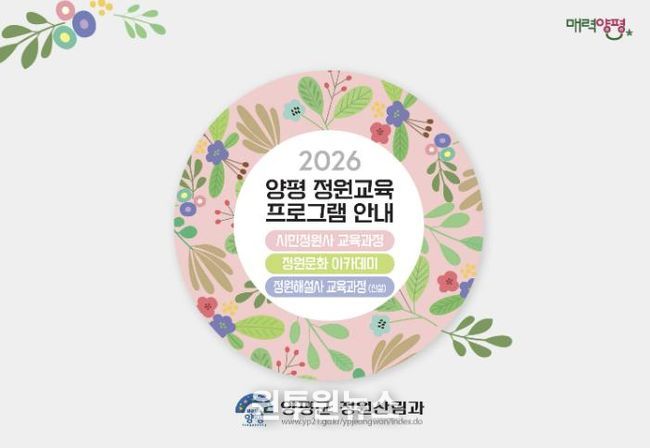 (원투원뉴스) 양평군은 올해 제14회 경기정원문화박람회 개최를 앞두고, 특별 신설 교육과정을 포함한 2026년 정원교육 운영계획을 발표했다. 양평군 정원교육은 △시민정원사 △정원문화아카데미 △정원해설사 등 세 가지 분야로 운영된다.