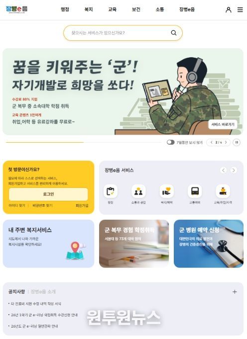 (원투원뉴스) 국방부는 장병들을 위한 국방 서비스 통합 플랫폼인 '장병e음'의 구축을 완료하고, 2026년 2월 4일부터 정식 서비스를 개시한다.