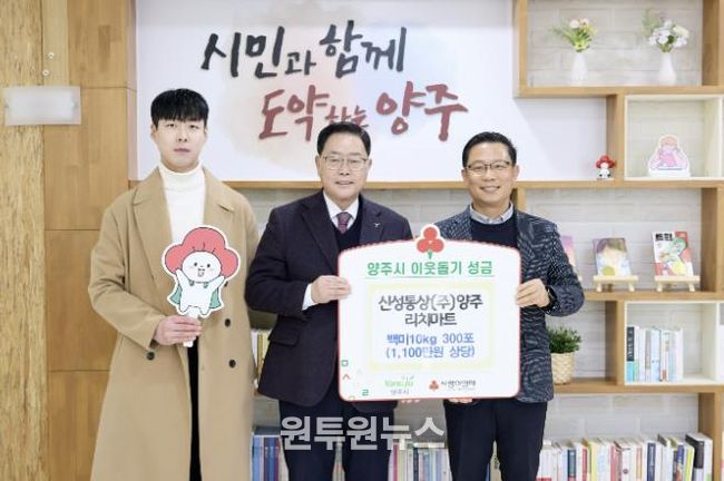 (원투원뉴스) 양주시는 지난 3일 관내 신성통상㈜ 리치마트가 설 명절을 맞아 양주시에 백미 300포(약 1,100만 원 상당)를 기부했다고 밝혔다.