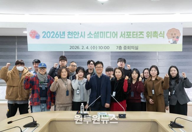 (원투원뉴스) 천안시가 4일 시청 중회의실에서 ‘2026년 소셜미디어 서포터즈 위촉식’을 개최했다.