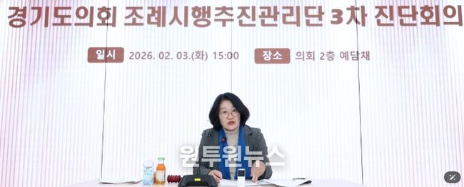 (원투원뉴스) ‘경기도의회 조례시행추진관리단’ 공동단장을 맡고 있는 경기도의회 교육기획위원회 신미숙 의원(더불어민주당, 화성4)은 3일(화), 경기도의회 예담채에서 열린 조례시행추진관리단 제3차 진단회의에 참석하여 회의를 주재했다.