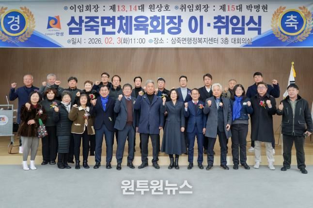 (원투원뉴스) 안성시 삼죽면은 지난 2월 3일, 삼죽행정복지센터 3층 대회의실에서 열린 삼죽면 체육회장 이·취임식을 성황리에 마쳤다고 밝혔다.