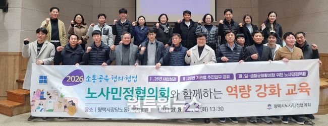 (원투원뉴스) 평택시노사민정협의회는 지난 3일 분과위원회 및 실무협의회 위원을 대상으로 '2026년 노사민정협의회 통합회의 및 일·생활 균형을 위한 역량 강화 교육'을 평택시 장당노동자복지회관 대회의실에서 개최했다.