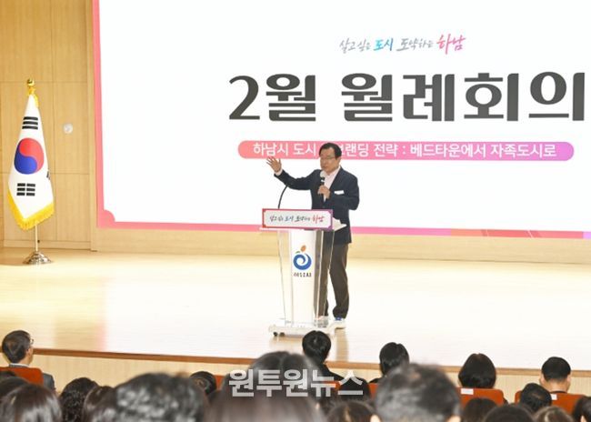 (원투원뉴스) 하남시는 4일 별관 대강당에서 올해 첫 월례회의를 개최하고, 캠프콜번 개발 본격화 등 시정 주요 성과를 공유하며 ‘글로벌 경제 중심 도시 하남’을 향한 비전을 제시했다.