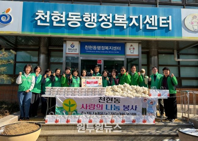 (원투원뉴스) 하남시 천현동은 지난 2월 3일 천현동 새마을협의회 및 부녀회 주관으로 관내 저소득층 50가구에‘사랑의 떡·물김치 나눔 행사를 실시했다'고 밝혔다.