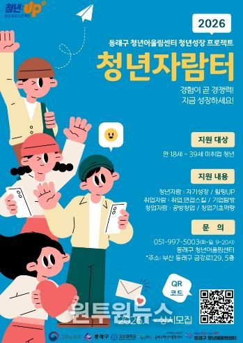 (원투원뉴스) 부산 동래구는 미취업 청년들의 진로 탐색과 취·창업 역량 강화를 지원하기 위해 ‘2026년 청년성장프로젝트 : 청년자람터 1기’ 참여자를 모집한다고 밝혔다.