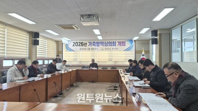 (원투원뉴스) 경남 밀양시는 4일 농업기술센터 소회의실에서 ‘2026년도 가축방역심의회’를 개최하고, 가축 질병 없는 ‘청정 밀양’을 지키기 위한 방역 대책을 심의·의결했다.