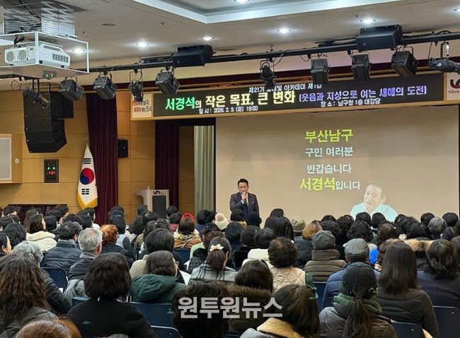 (원투원뉴스) 부산 남구는 지난 2월 3일 오후 7시, 남구청 1층 대강당에서 ‘제21기 등대빛 아카데미’ 제1강을 개최했다고 밝혔다.