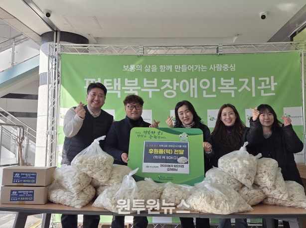 (원투원뉴스) 평택북부장애인복지관은 2월 3일 현대자동차 송탄지점 김재원 후원자로부터 지역사회 장애 당사자 및 장애인 가정의 따뜻한 설 명절을 위한 떡국떡을 후원받았다.