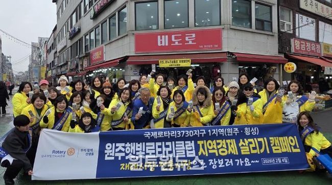 이날 원주햇빛로타리클럽 회원 50여 명은 전통시장에서 식료품과 생필품 등을 직접 구매하며 지역 상권 활성화에 힘을 보탰다. 또한 구매 물품 중 일부는 지역 내 취약계층 지원을 위해 전달하기로 했다.