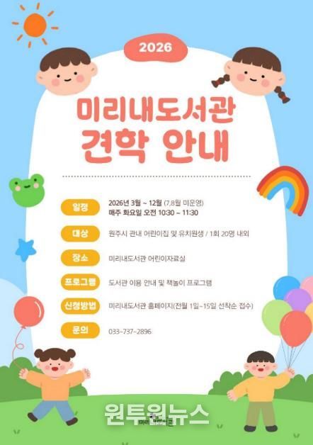 (원투원뉴스) 원주시 미리내도서관은 3월부터 12월까지 관내 유치원과 어린이집을 대상으로 어린이 견학 프로그램을 운영한다.