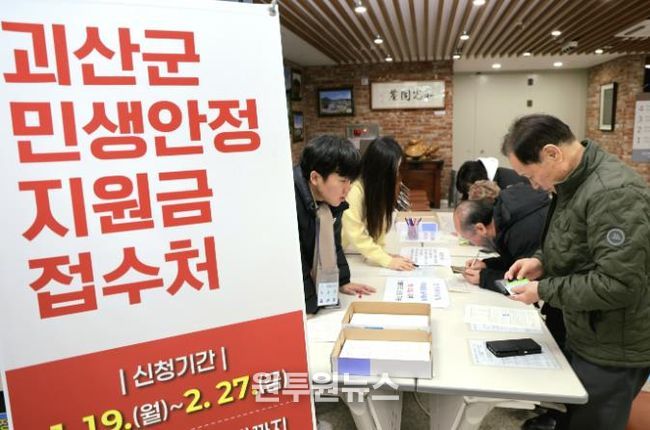 (원투원뉴스) 충북 괴산군은 지난 3일 기준 ‘2026년 민생안정지원금’ 신청률이 85.29%를 기록했다고 5일 밝혔다.