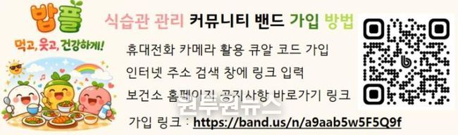 (원투원뉴스) 울주군 남부통합보건지소가 올해부터 울주군민을 대상으로 식습관 관리 커뮤니티 밴드 ‘밥플(밥-plan)’을 운영한다고 5일 밝혔다.