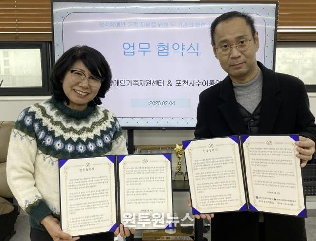 (원투원뉴스) 포천시장애인가족지원센터는 지난 4일 포천시수어통역센터와 농인(청각장애인) 가족의 복지 증진과 서비스 접근성 강화를 위한 업무협약(MOU)을 체결했다.
