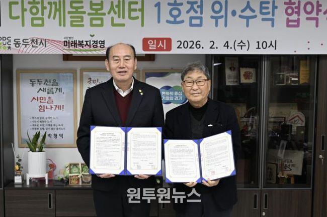 (원투원뉴스) 동두천시는 지난 4일 다함께돌봄센터 1호점 수탁기관인 (사)미래복지경영과 센터 운영 및 효율적인 돌봄 서비스 제공을 위한 위·수탁 협약을 체결했다고 밝혔다.