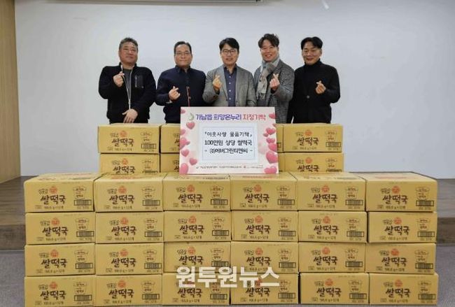 (원투원뉴스) 여주시 가남읍 소재 기업인 ㈜에버그린티앤씨는 민족 대명절인 설을 앞두고 지난 4일, 가남읍 행정복지센터를 방문해 관내 취약계층을 위한 100만 원 상당의 쌀떡국 504개를 기탁했다.