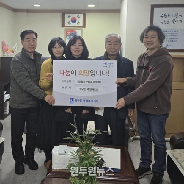 (원투원뉴스) 지난 4일 수원시 팔달구 행궁동 주민자치회는 지역 내 취약계층을 돕기 위해 후원금 200만원을 행궁동 행정복지센터에 기부했다.
