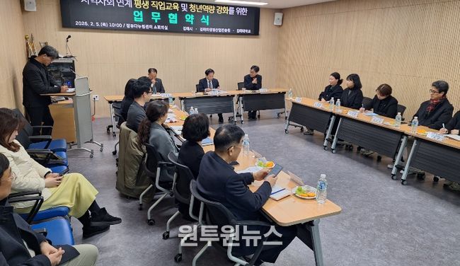 이를 위해 장유출장소는 2026년 2월 5일 장유다누림센터에서 김해대학교 및 김해의생명·산업진흥원과 업무협약을 체결하여 지역 맞춤형 교육과정 공동 운영과 청년 대상 실무·취업 연계 프로그램 발굴에 상호 협력하기로 했다.