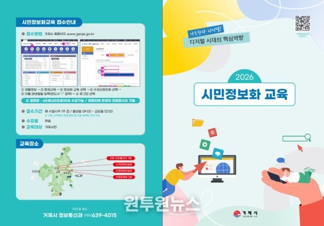 (원투원뉴스) 거제시가 시민의 디지털 역량 강화를 위해 ‘2026년 시민정보화교육’을 2월 23일부터 12월 4일까지 운영하며 수강 신청은 2월 9일부터 선착순으로 접수한다고 밝혔다.