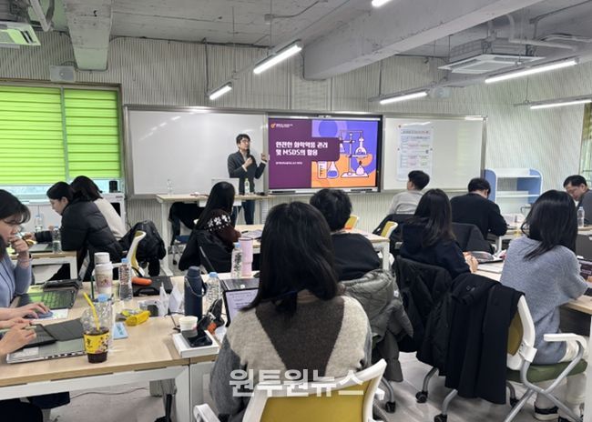 5일 연수의 주요 내용은 ▲과학실험실 안전관리의 실제 ▲안전한 화학약품 관리 및 MSDS 활용 ▲사례로 알아보는 과학실험실 안전 등 학교 현장에서 바로 적용 가능한 실습·사례 중심 프로그램이 운영됐다.