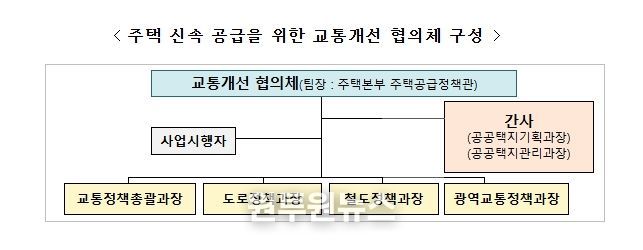 협의체는 주택공급추진본부 주택공급정책관을 팀장으로 교통정책총괄과장, 도로정책과장, 철도정책과장, 광역교통정책과장으로 구성되며, 주택공급 대상지와 관련하여 도로·철도·대중교통 등 교통 전반에 관련한 개선방안을 종합적으로 검토할 계획이다.