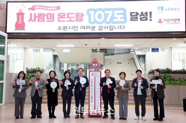 (원투원뉴스) 수원특례시의회는 2월 5일, 시청 본관 1층 로비에서 열린 ‘사랑의 온도탑’ 폐막식에 참석해 시민과 함께한 나눔의 의미를 되새겼다.