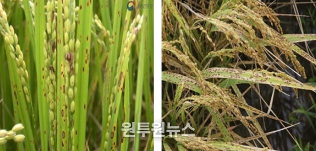 (원투원뉴스) 옥천군농업기술센터는 최근 고온다습한 기상 여건이 이어지는 가운데, 전년도 지역 내 벼 깨씨무늬병 피해가 적지 않았던 점을 고려해 올해는 사전 예방 중심의 종합 관리 강화를 적극 당부했다.