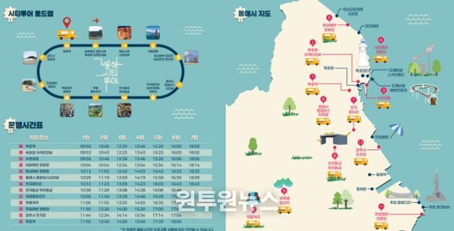 (원투원뉴스) 동해문화관광재단은 오는 2월 7일부터 관광객의 이동 편의와 지역 관광 활성화를 위해‘동해시티투어버스’운행에 나선다.