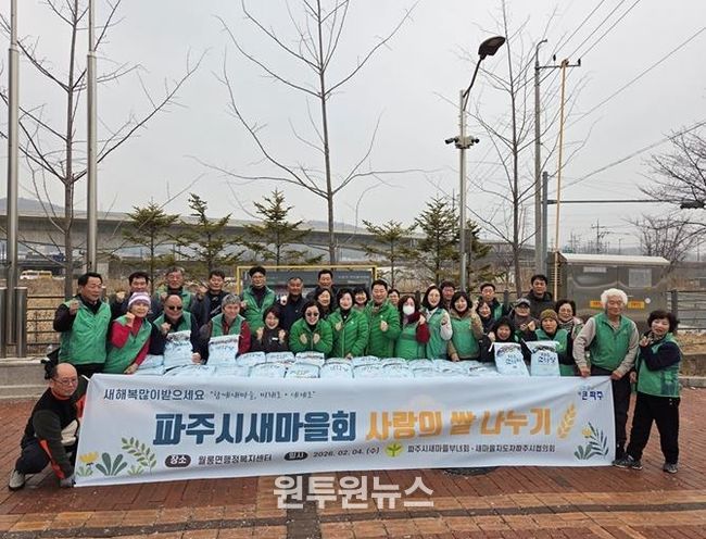 (원투원뉴스) 파주시새마을회는 다가오는 설 명절을 앞두고 지난 4일 월롱면 행정복지센터에서 ‘사랑의 쌀 나누기’행사를 개최하며 지역 내 이웃들에게 온정을 전했다.