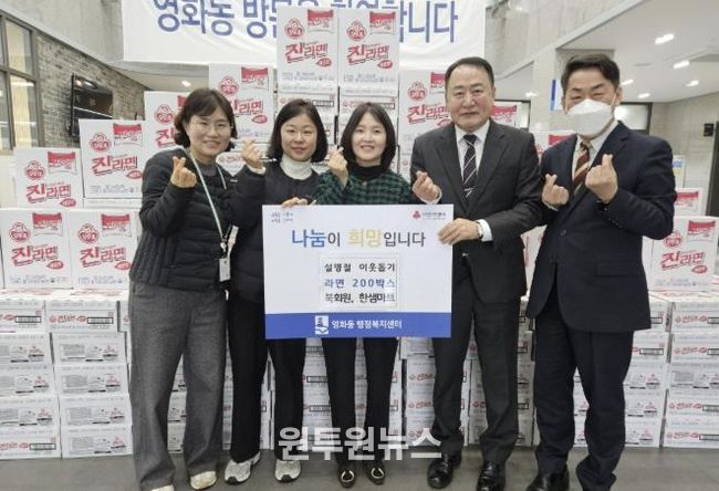 영화동 행정복지센터는 기부된 라면 200박스를 설 연휴 전까지 관내 저소득 가정, 독거노인 등 생활이 어려운 이웃에게 신속히 전달할 계획이다.