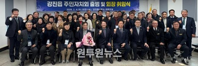 (원투원뉴스) 강진군 강진읍 주민자치회가 지난 4일 강진읍사무소 대회의실에서 지역에서 첫 통합 주민자치회의 공식 출범을 알리는 신임 회장 취임식을 가졌다.