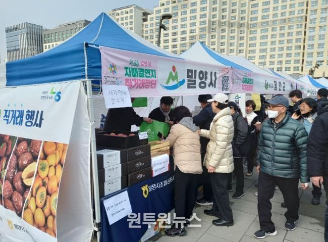 이번 장터는 설 명절을 앞두고 유동 인구가 많은 휴게소에서 밀양의 우수 농특산물을 홍보하고 판매해 농가 소득 증가와 판로 확대를 지원하고자 마련됐다.