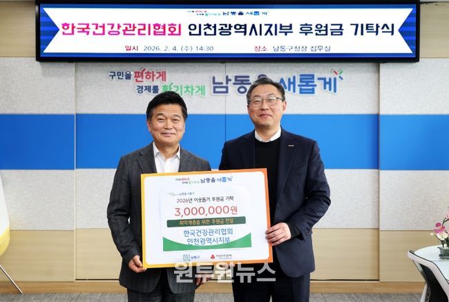 (원투원뉴스) 인천시 남동구는 한국건강관리협회 인천광역시지부(본부장 이상철)로부터 어려운 이웃을 위한 후원금 300만 원을 기탁받았다고 6일 전했다.