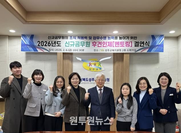 (원투원뉴스) 경상북도성주교육지원청은 6일 소회의실에서 2026. 1. 1.자 신규 공무원 1명, 멘토 공무원 2명이 참석하여 신규 공무원의 조직 적응력을 높이고 자신감 있는 공직 생활을 유도하고자 후견인제(멘토링) 결연식과 직무연수를 가졌다.