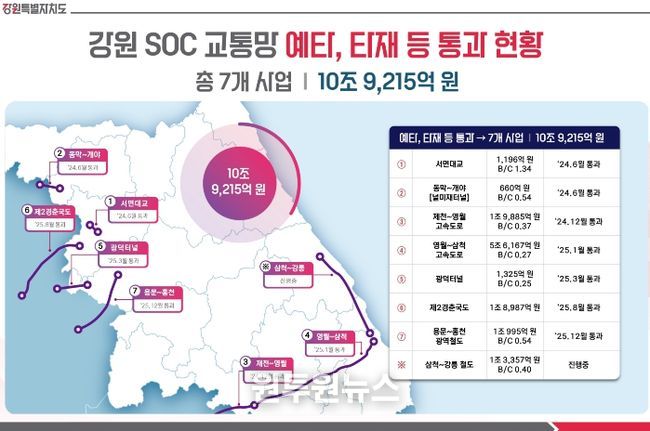 한편, 민선 8기 들어 도는 예비타당성조사와 타당성 재조사를 통해 총 7개 SOC 교통망사업, 10조 9,215억 원 규모를 확보하는 성과를 거뒀다.
