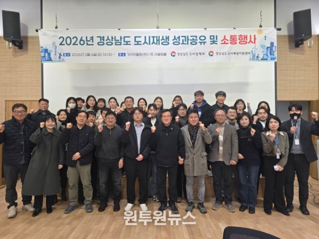 (원투원뉴스) 경상남도는 6일 함안군 가야어울림센터에서 도내 도시재생사업의 성과를 공유하고 시군 간 소통을 강화하기 위한 ‘2026년 경상남도 도시재생사업 성과공유 및 소통행사’를 개최했다고 밝혔다.