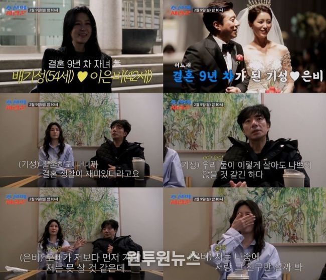 2월 9일(월) 방송될 '조선의 사랑꾼' 선공개 영상에서는 '♥원진서' 윤정수의 결혼식에서 축가로 흥을 돋웠던 배기성이 '12살 연하' 아내 이은비와 함께 새로운 사랑꾼으로 합류하며 시청자에게 정식으로 인사를 건넨다. 결혼 9년 차에 접어든 배기성은 "결혼하기 전에는 '난 결혼하면 무조건 애부터 낳을 거야' 했는데, 결혼하고 나니까 결혼 생활이 재미있었다. 둘이 살아도 나쁘지 않을 것 같았다"며 아내바라기의 면모를 드러냈다. 이어 그는 "제가 결혼을 늦게 하다 보니 시험관 시술 등을 알아봤는데 아내가 많이 힘들더라. 그래서 강요하진 않았다"며 아이에 대한 생각을 밝혔다.