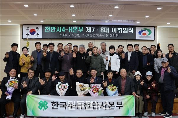 (원투원뉴스) 천안시4-H본부는 지난 2월 5일 천안시농업기술센터 대강당에서 김양섭 농업기술센터소장, 농업인단체장 및 4-H회원이 참석한 가운데 ‘천안시4-H본부 제7·8대 회장 이·취임식’을 개최했다고 밝혔다.