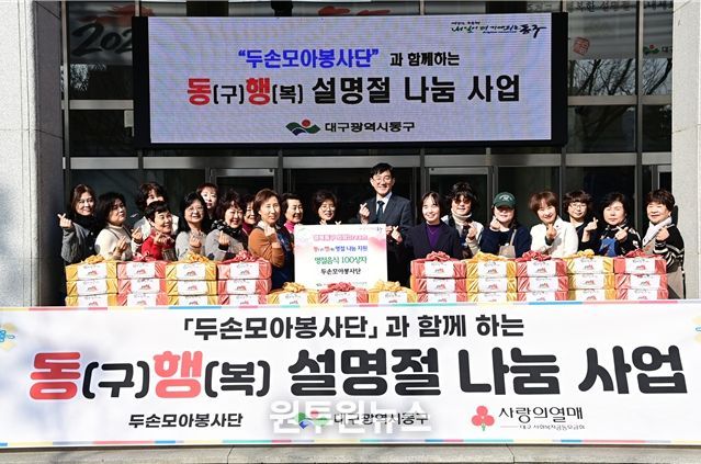 한편, 동(구)행(복) 명절 음식 나눔 사업은 대구 동구청과 대구사회복지공동모금회 간 협약을 통해 추진 중인 ‘행복동구 희망Dream’ 기획사업의 일환으로, 매년 명절마다 자원봉사단체와 연계해 음식을 만들고 나눔으로써 저소득 어르신 세대가 따뜻한 명절을 보낼 수 있도록 지원하고 있다.