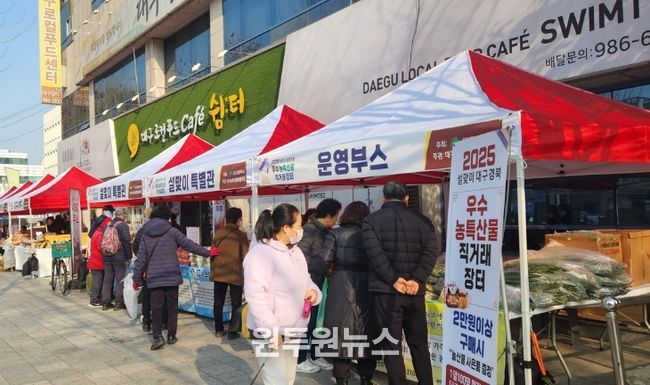 (원투원뉴스) 대구광역시는 민족 최대 명절인 설을 맞아 대구·경북 지역의 우수 농특산물을 시중가보다 최대 40% 저렴하게 판매하는 ‘우수 농특산물 직거래장터’를 2월 12일부터 이틀간 대구 로컬푸드직매장 주차장에서 개최한다.