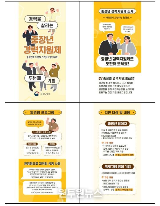 (원투원뉴스) 고용노동부는 퇴직 이후 새로운 분야로 재취업을 준비하는 중장년을 대상으로, 실제 직무 경험을 통한 경력 전환을 지원하는 “중장년 경력지원제”를 시행한다.