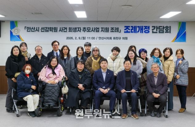 (원투원뉴스) 안산시의회 최찬규 의원은 2월 9일 안산시의회 3층 대회의실에서 ‘안산시 선감학원 사건 희생자 추모사업 지원 조례’ 일부개정을 위한 간담회를 개최했다.
